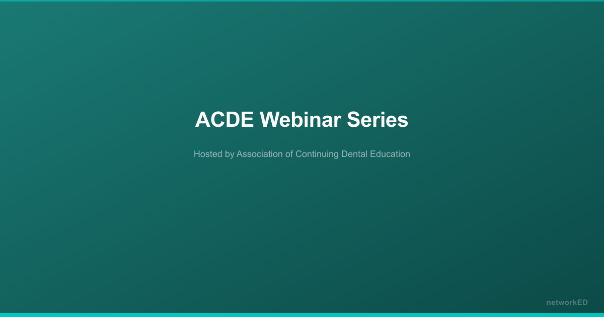 A series of live webinars featuring university-based key opinion leaders in dental education. The webinar series is jointly provided by ACDE and 31 of its member schools from accredited dental schools in Canada and the United States, with each lecture hosted by a different member school.