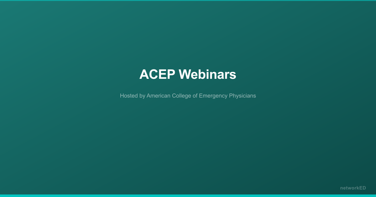 A series of educational webinars offered by the American College of Emergency Physicians covering various topics in emergency medicine. Sessions include topics such as disaster response, patient safety, point-of-care ultrasound, and dual training for emergency medicine physicians.
