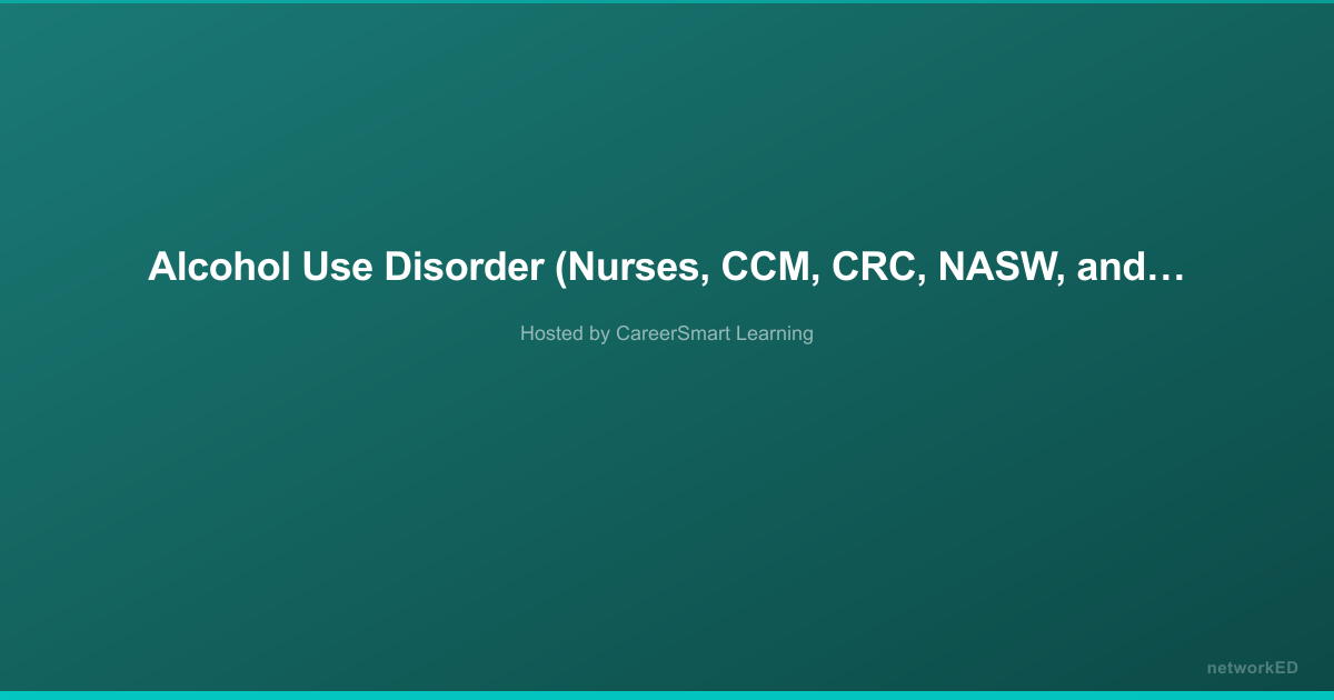 Alcohol Use Disorder (Nurses, CCM, CRC, NASW, and WC CA approved) – 3.0 CE/Contact Hours
