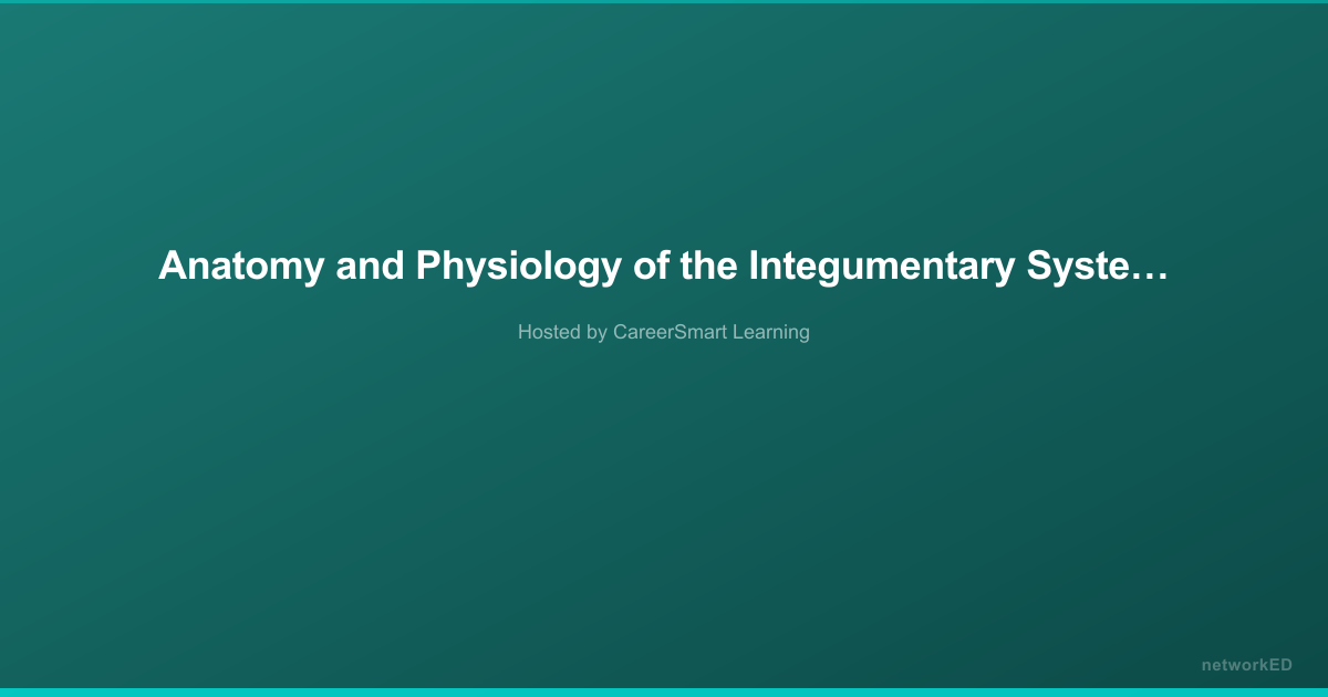 This is a self-paced online continuing education course focused on the integumentary system. Learners will study the major components and functions of the skin, physiological processes including regeneration and thermoregulation, protection mechanisms against environmental and microbial threats, and aging of the integumentary system. The course awards 1.0 CE/contact hour upon completion.