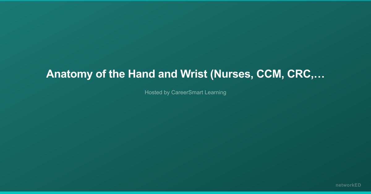 Anatomy of the Hand and Wrist (Nurses, CCM, CRC, and WC CA approved) – 1.0 CE/Contact Hours