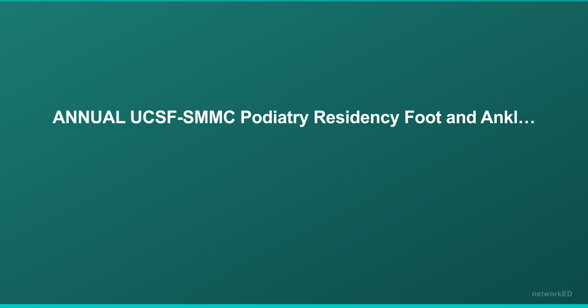 Annual continuing education symposium for podiatry residents and foot and ankle practitioners presented by UCSF-SMMC Podiatry Residency program. This webinar covers current topics, research, and clinical best practices in podiatric medicine and foot and ankle care relevant to residency training and clinical practice.